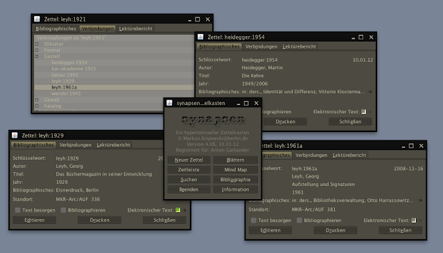 Tym programem jest Synapsen ↗ autorstwa Markusa Krajewskiego. Co ciekawe, Krajewski jest autorem książki Paper Machines: About Cards & Catalogs, 1548-1929 (Krajewski 2011), którą cytował trms w swoim filmie o Konradzie Gessnerze ↗ (trms 2020), który oglądałem już jakiś czas temu.